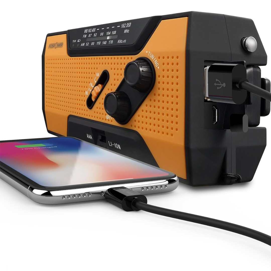 This versatile radio offers 5 different charging options, including solar power, hand crank, and USB, so you can always rely on power, even during outages. With a powerful 2000mAh power bank, 2 light modes (reading lamp and flashlight), a loud SOS alarm, and IPX3 water resistance, you are always prepared for emergencies. Receive reliable NOAA weather alerts and stay connected, no matter the circumstances!