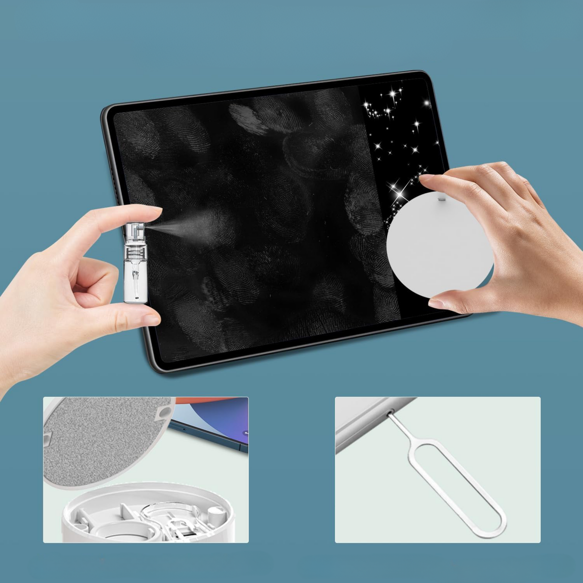 Il Kit di Pulizia Sparkkit™ è la soluzione intelligente e completa per pulire il tuo SnapStick™, tastiera, auricolari, laptop e altri dispositivi elettronici. Con 21 strumenti pratici – tra cui punte in silicone, panni in flanella, estrattori di tasti, spazzole e spugnette – rimuovi facilmente polvere, sporco e macchie anche negli angoli più nascosti.